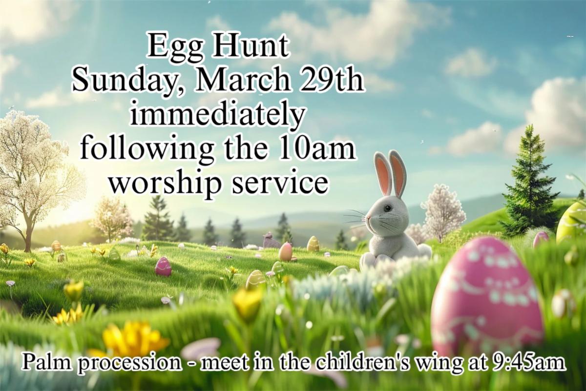We will have an Easter Egg Hunt on Palm/Passion Sunday (March 29) right after worship.