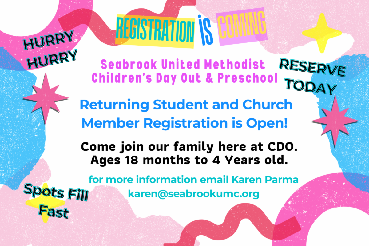 If you have any questions or need help completing the background check or safe sanctuary training, please contact Karen Parma at karen@seabrookumc.org. You can also stop by her office in the preschool on Mondays and Tuesdays from 9:45-11:30.