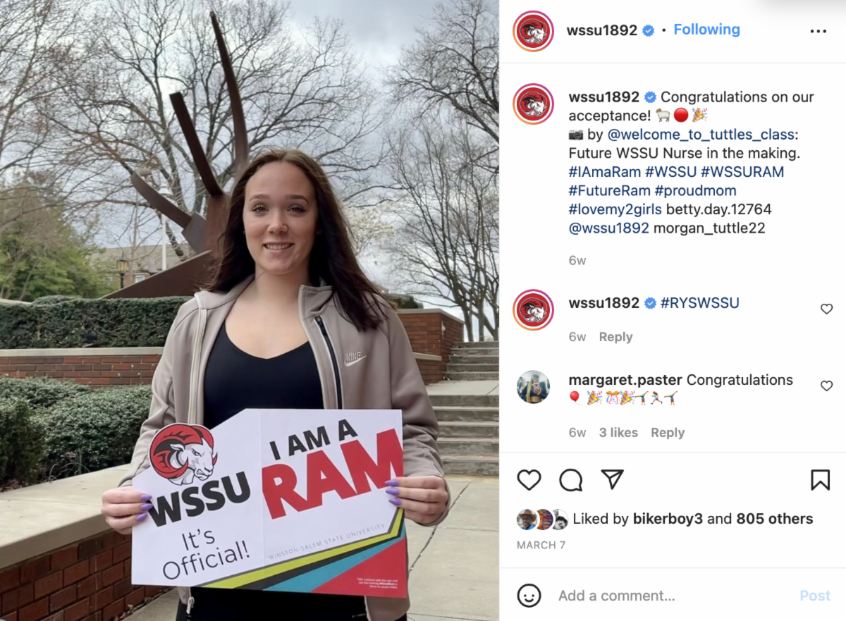 Hello ! May 1 is National Decision Day. New Rams, time to represent! Post your photos on Twitter and Instagram with the hashtags #WSSU26 and #NationalDecisionDay. Still deciding? Check out these students and then make your decision today to #BeTheNext Ram.