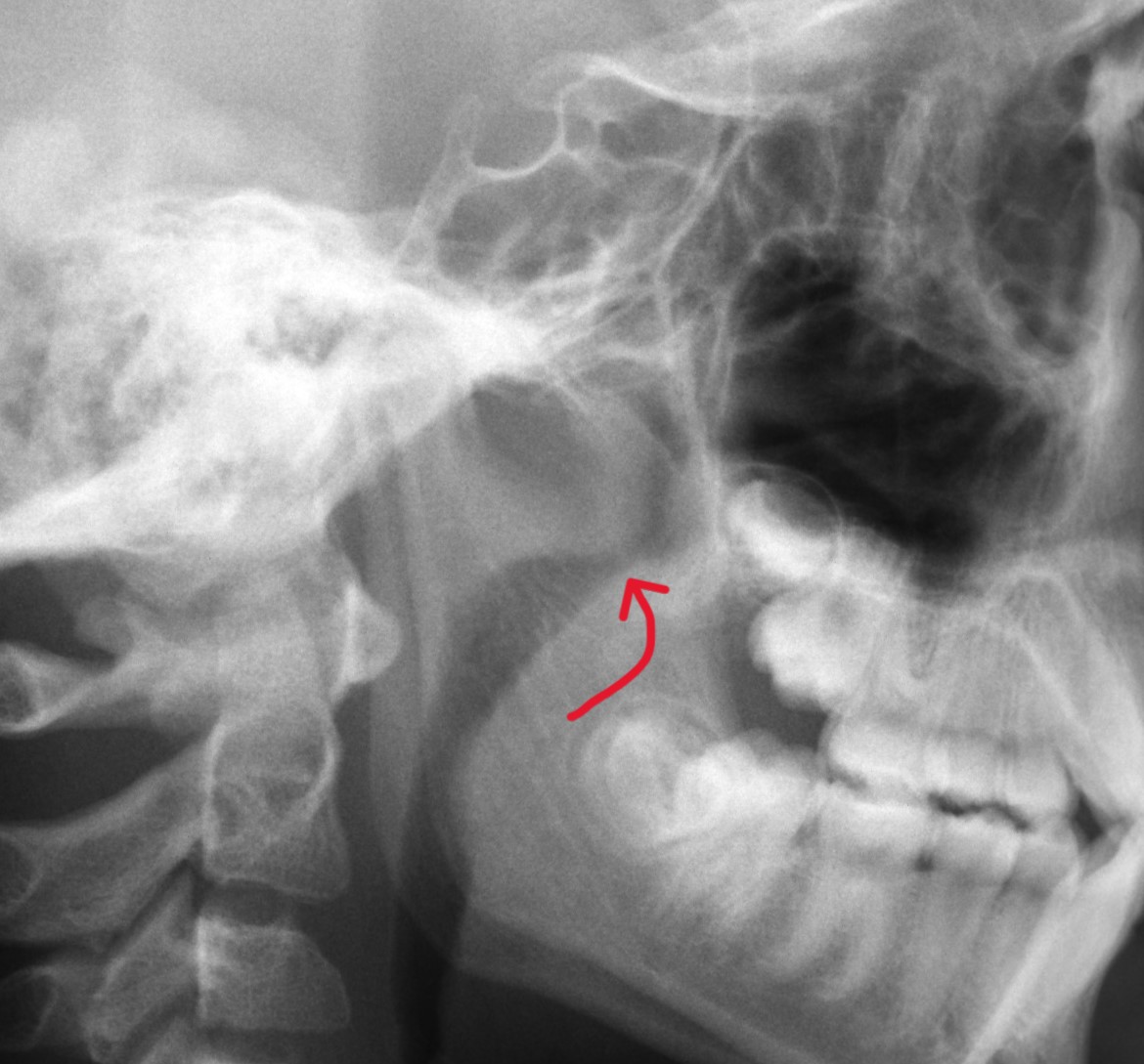 Through the ceph above, we can see that this patient still has some growth spurts to look forward to, but not only does this particular ceph show the patient's growth, we can also see their airway. A huge benefit of cephs is the ability to see a patient's adenoids and their relation to a patient's airway, as seen in the image to the right.