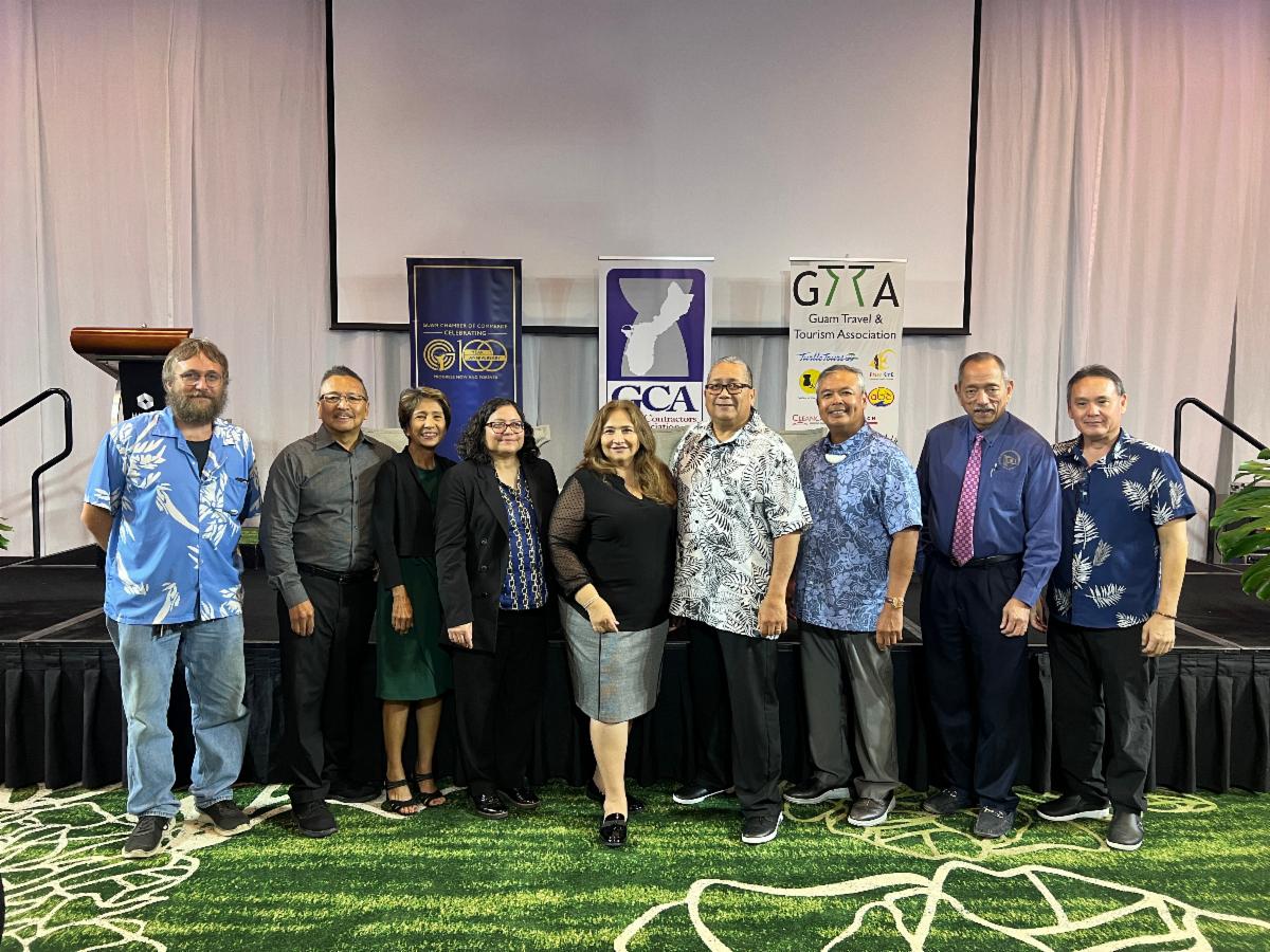| | L-R: Matthew Hunter, Chairman, Guam Contractors Association (GCA), Ernie Galito, Immed. Past Chairman, Guam Chamber of Commerce, Jovyna Lujan, Chairwoman, Guam Travel & Tourism Association (GTTA), Senator Sabina Perez, Catherine Castro, Chamber President, Speaker Frank Blas, Jr., David Tydingco, GTTA, Benjamin J.F. Cruz, Public Auditor, Bill Nault, GTTA. | | |