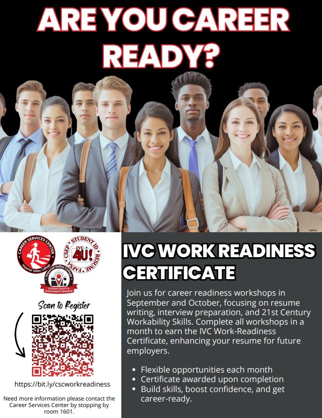 By completing the entire series within one month, students will receive the IVC Work-Readiness Certificate—a valuable credential that underscores your dedication to professional development.