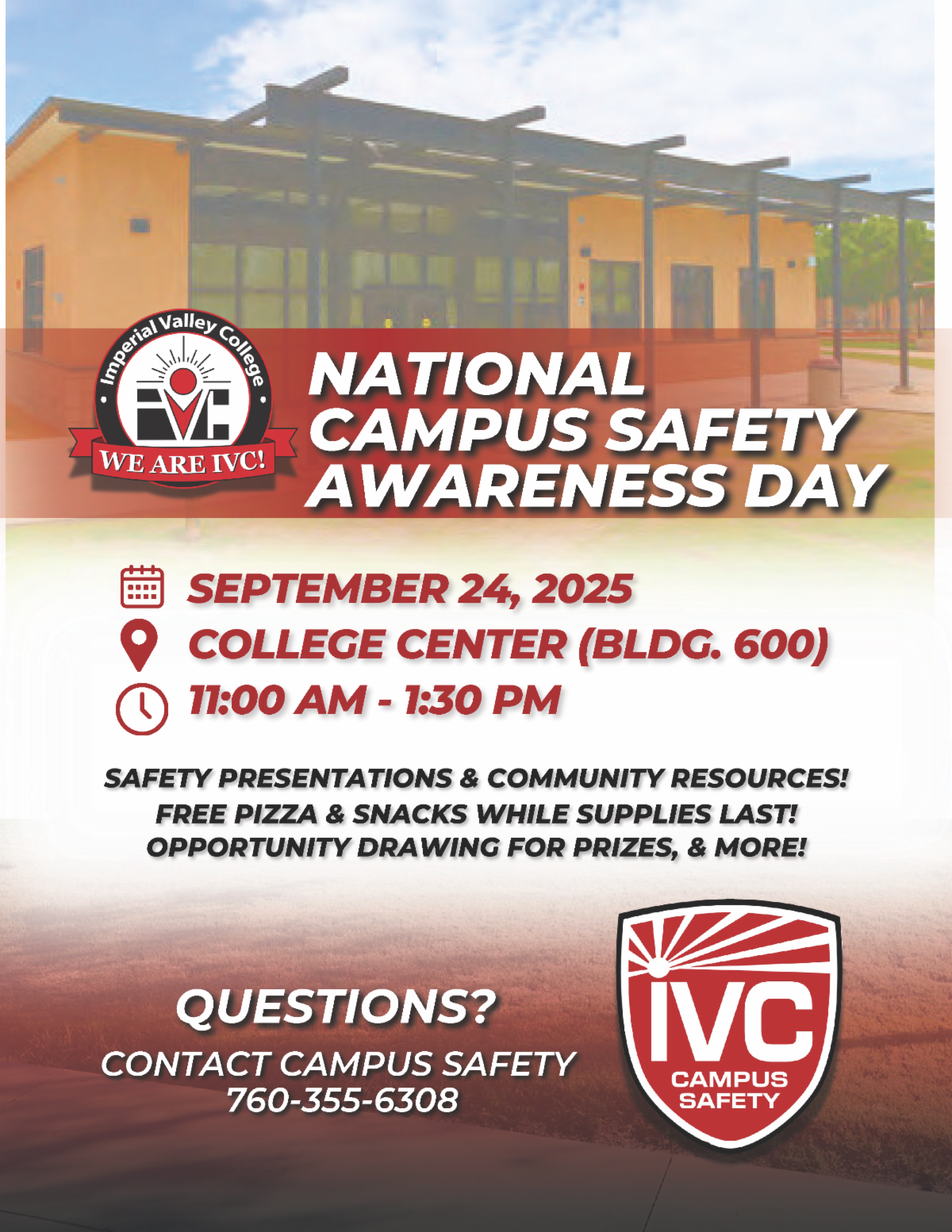 Students, we want you to know that Imperial Valley College is committed to providing a safe and supportive environment for all members of our campus community—regardless of their circumstances. We are actively working with local and federal agencies to ensure that law enforcement does not come onto campus without proper legal notice. Your safety, privacy, and right to learn without fear remain our top priorities.