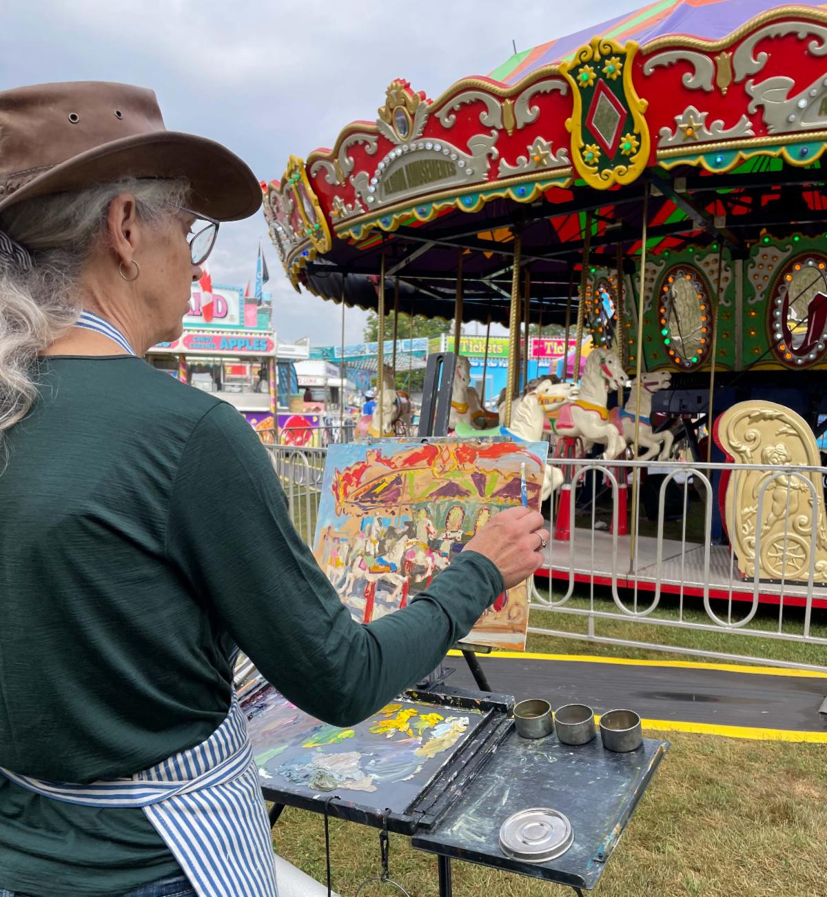 Photo: Artist Linda Ross Gallagher painting at the Acton Fall Fair, 2024
