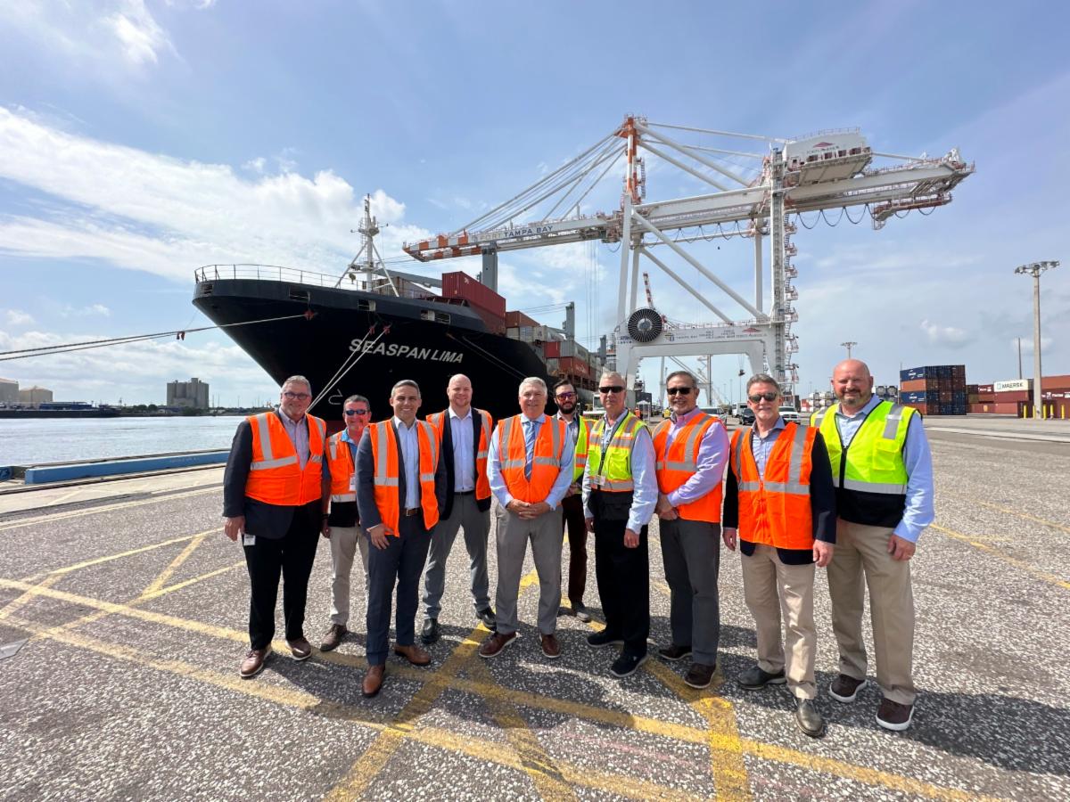 To celebrate the SEASPAN LIMA’s first call, leaders from Port Tampa Bay and Maersk participated in a plaque exchange ceremony (courtesy of Port Tampa Bay). | |