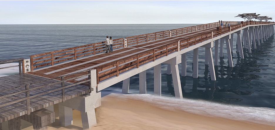 Flagler Beach Pier Rebuild | A rendering of the reconstructed Flagler Beach pier design (Courtesy of Moffatt & Nichol). | |