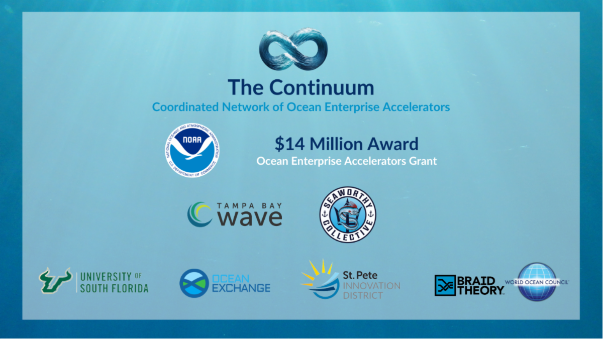 The Continuum is a new initiative launched with a $13.9 million grant from NOAA to foster BlueTech solutions, supporting startups working on ocean and coastal resilience. Seven U.S. organizations—Braid Theory, Ocean Exchange, St. Pete Innovation District, Seaworthy Collective, Tampa Bay Wave, University of South Florida, and World Ocean Council—are collaborating to drive innovation and commercialization in the BlueTech sector.