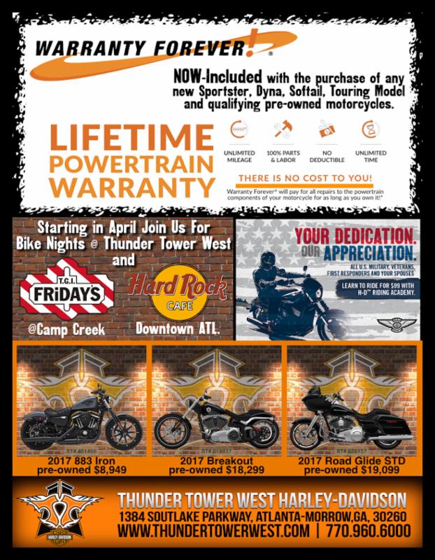 Apr. 29 Dalton, GA. Open House. Mountain Creek H-D, 1001 Market St. Noon-5PM. Demo the 2017's and find your new ride. Food available for purchase.