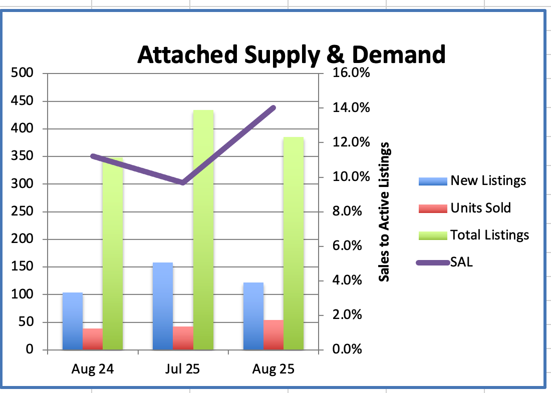 We had 54 Westside Attached home sales in August, compared to 42 sales last month.