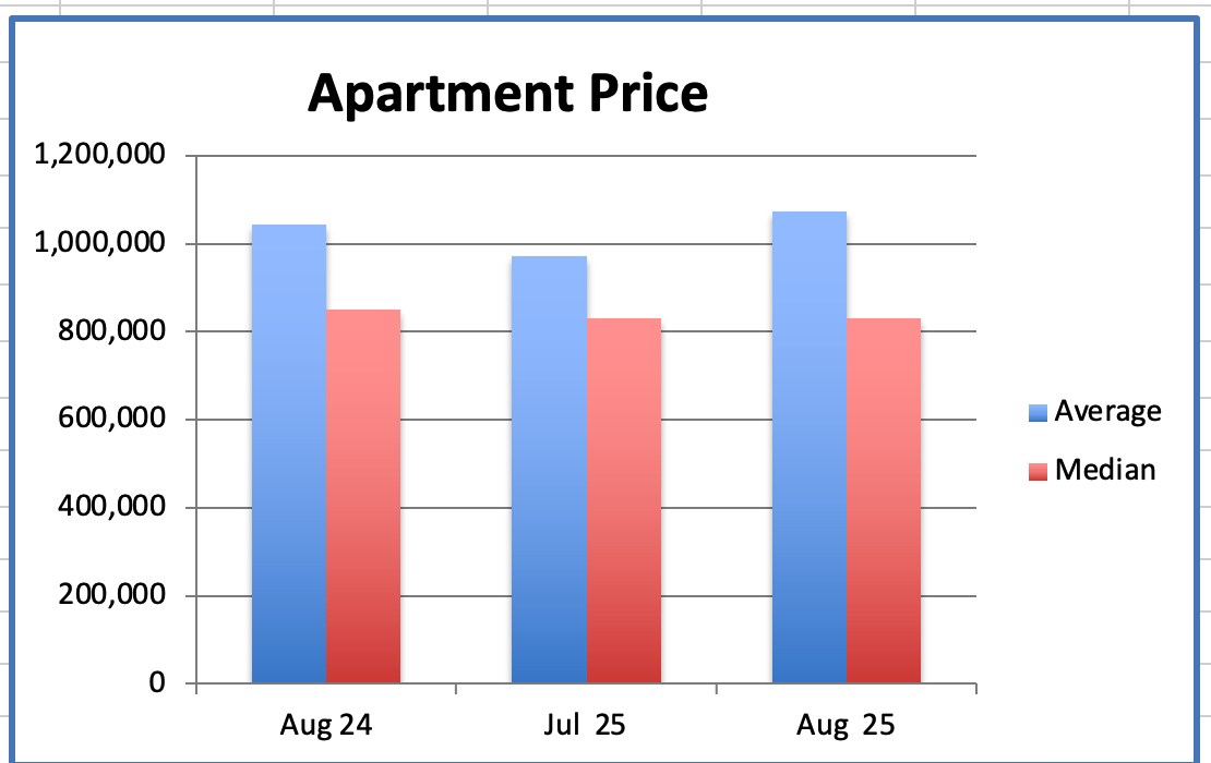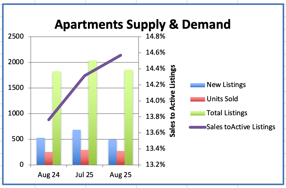 We had 271 Westside Apartment sales in August, compared to 292 sales last month.