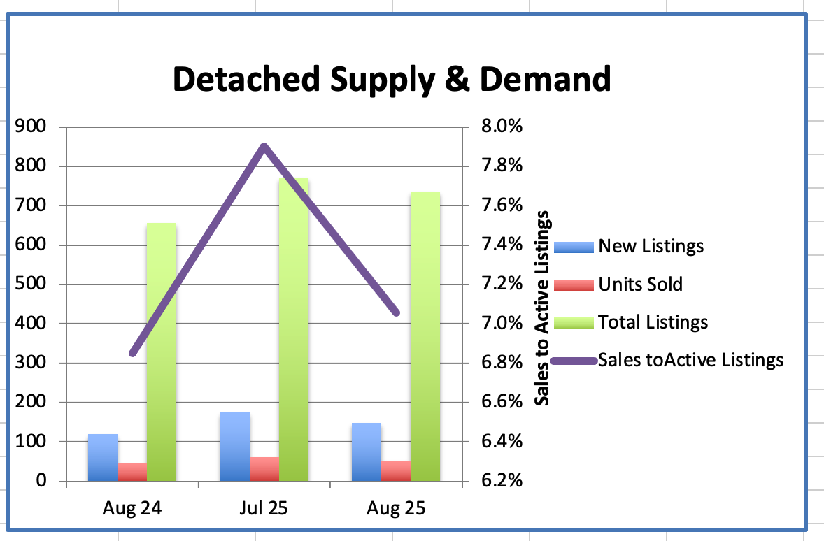 We had 52 Westside Detached home sales in August, compared to 61 sales last month.