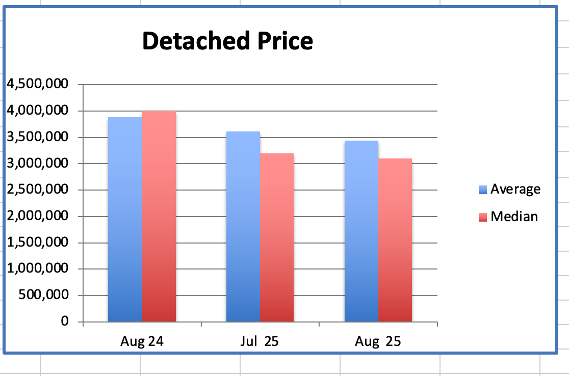 In August the westside Detached Home average price was down 28% from the peak in August 2023.