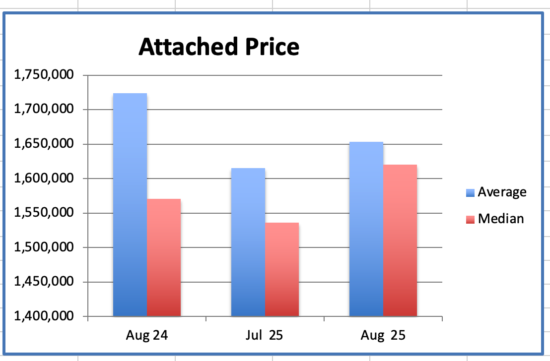 The Attached home average price was down 12% from the peak in Dec 2024.
