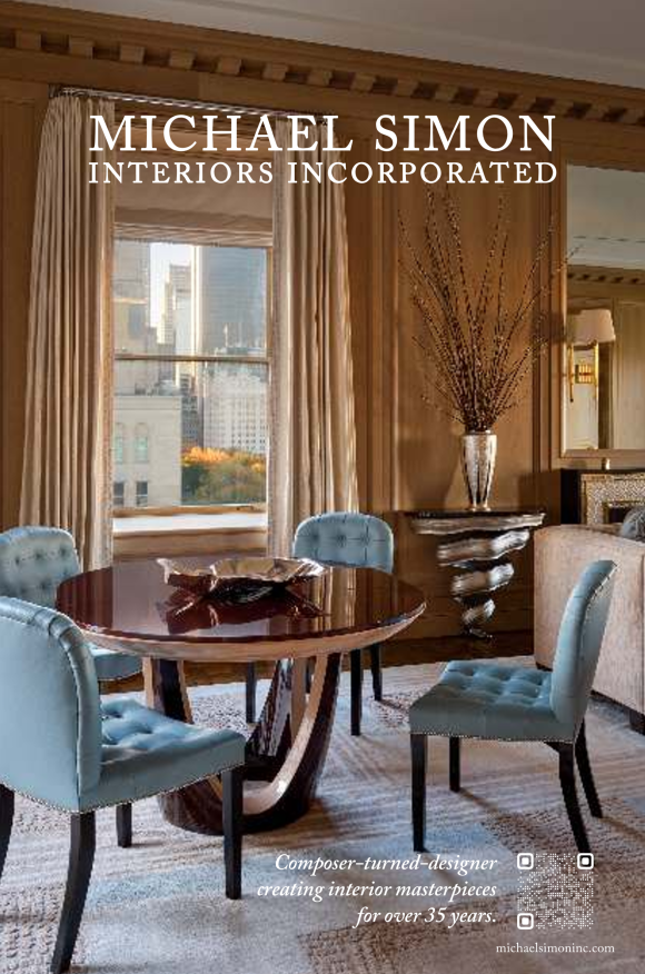 Before embarking on his celebrated design career, Michael Simon trained as a composer under the legendary Stephen Sondheim and John Corigliano. He pursued classical music at Carnegie Mellon University and the Manhattan School of Music, and his unique background in composition continues to influence his design philosophy today.
