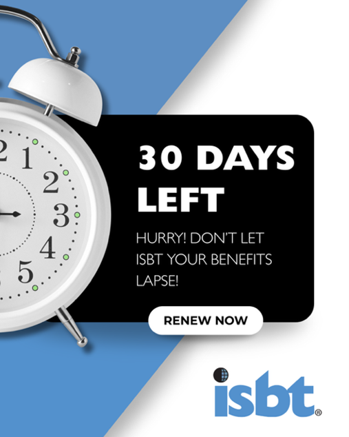 Renew your ISBT membership in the Member Info Hub before January 31 to maintain uninterrupted access to all benefits.