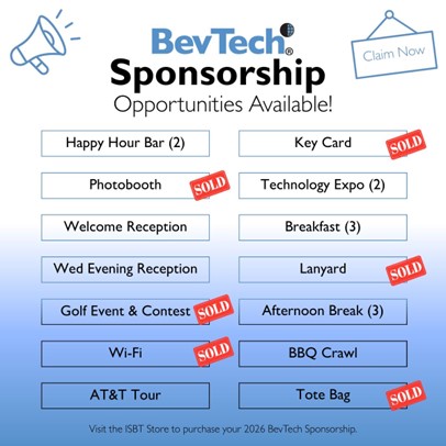 Position your brand for maximum visibility at BevTech and connect directly with beverage industry decision-makers. Sponsorship opportunities are limited and filling quickly—once they’re gone, they’re gone.