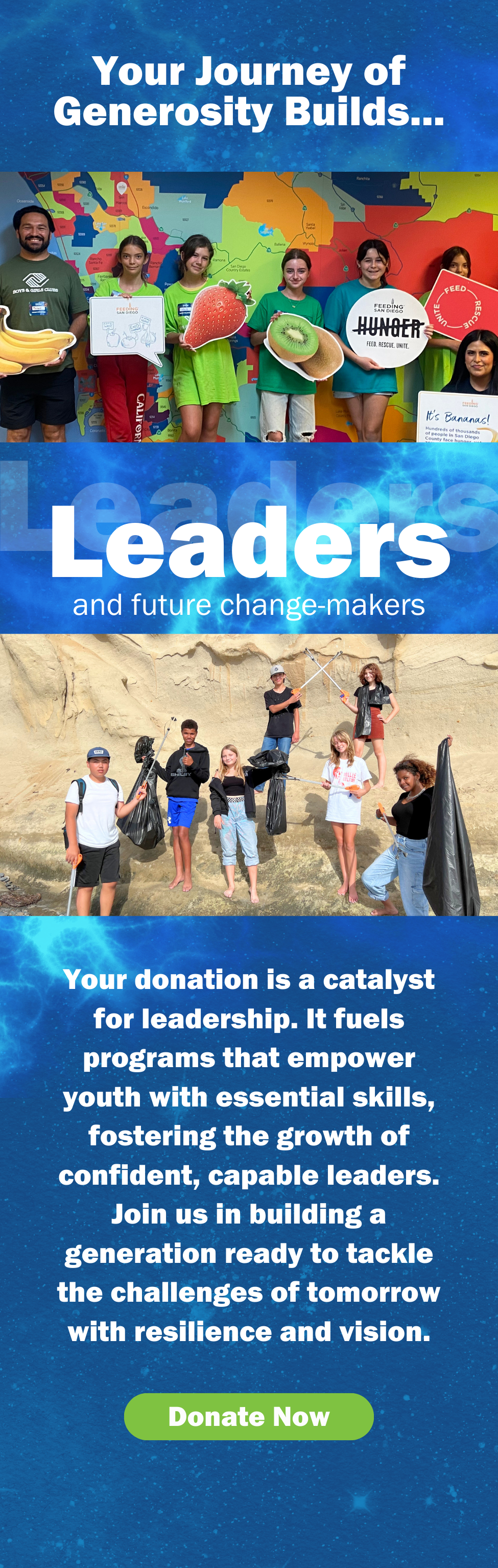 Boys & Girls Clubs of San Dieguito is an IRS 501(c)3 nonprofit organization. All or part of your contribution may be deductible for Federal tax purposes. Tax ID 95-2470435