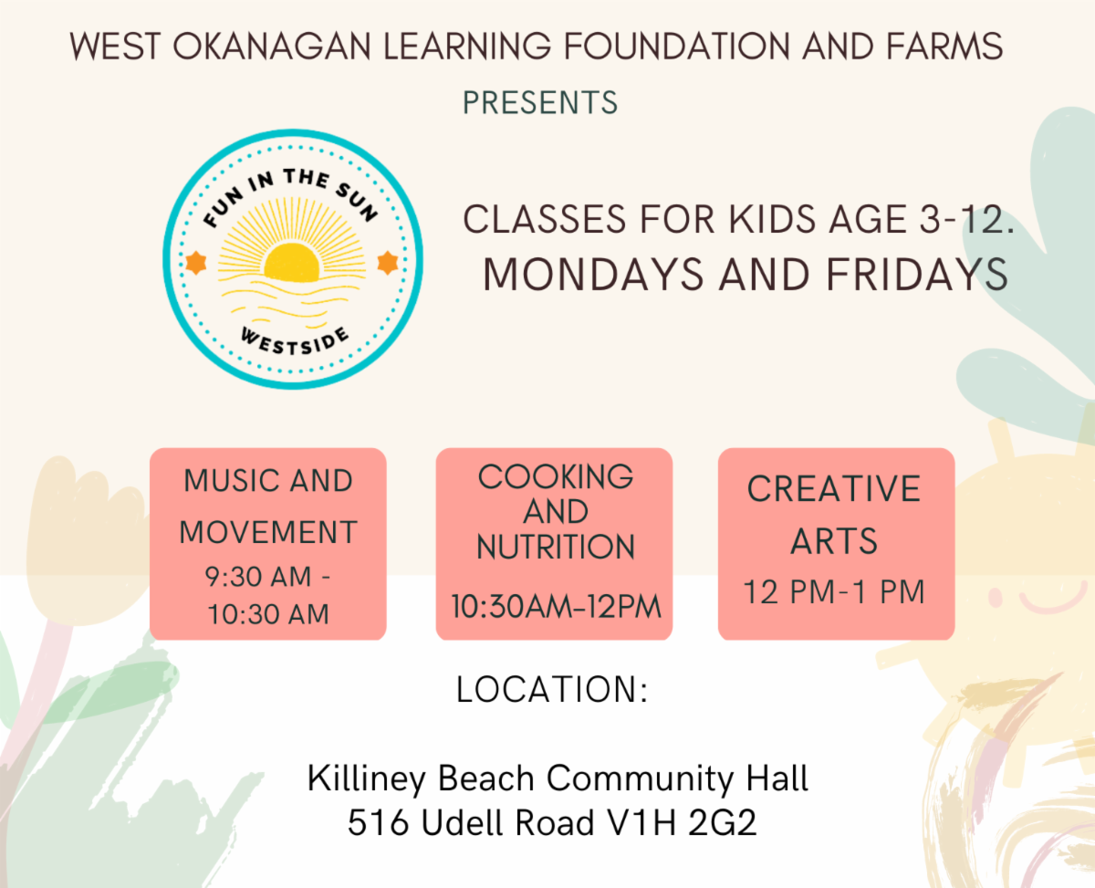 The Fintry Fusion Art Show features local artists of the Okanagan Artists of Canada Society and the North Okanagan Federation of Canadian Artists, with spectacular artwork of the Okanagan. Artists will be on-site to answer questions and give demonstrations, and selected pieces will be available for purchase.