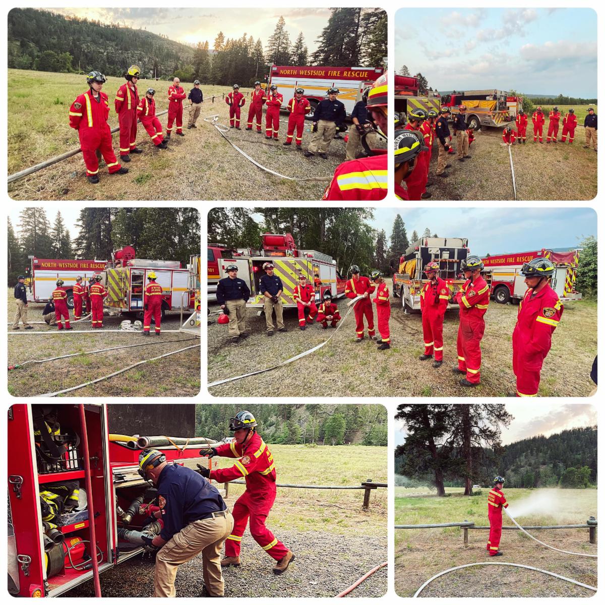 NWFR members were at Fintry Park this week practicing forestry skills & training on various deployment methods on our engine, tender and rescue vehicles, getting prepared for wildfire season. We also had two of our amazing Jr. Firefighters Ruby & Bogdan demonstrate the “melon roll” hose method.