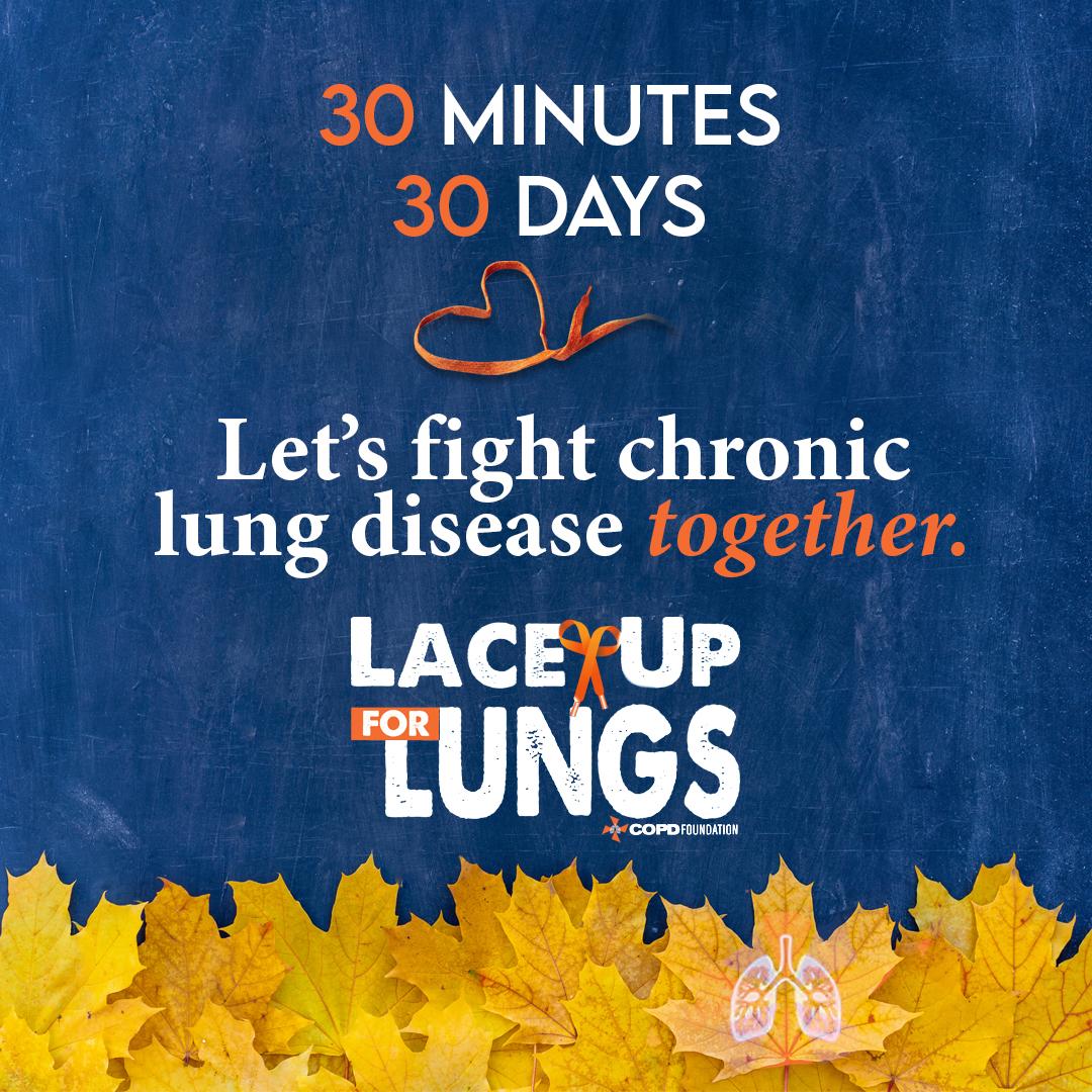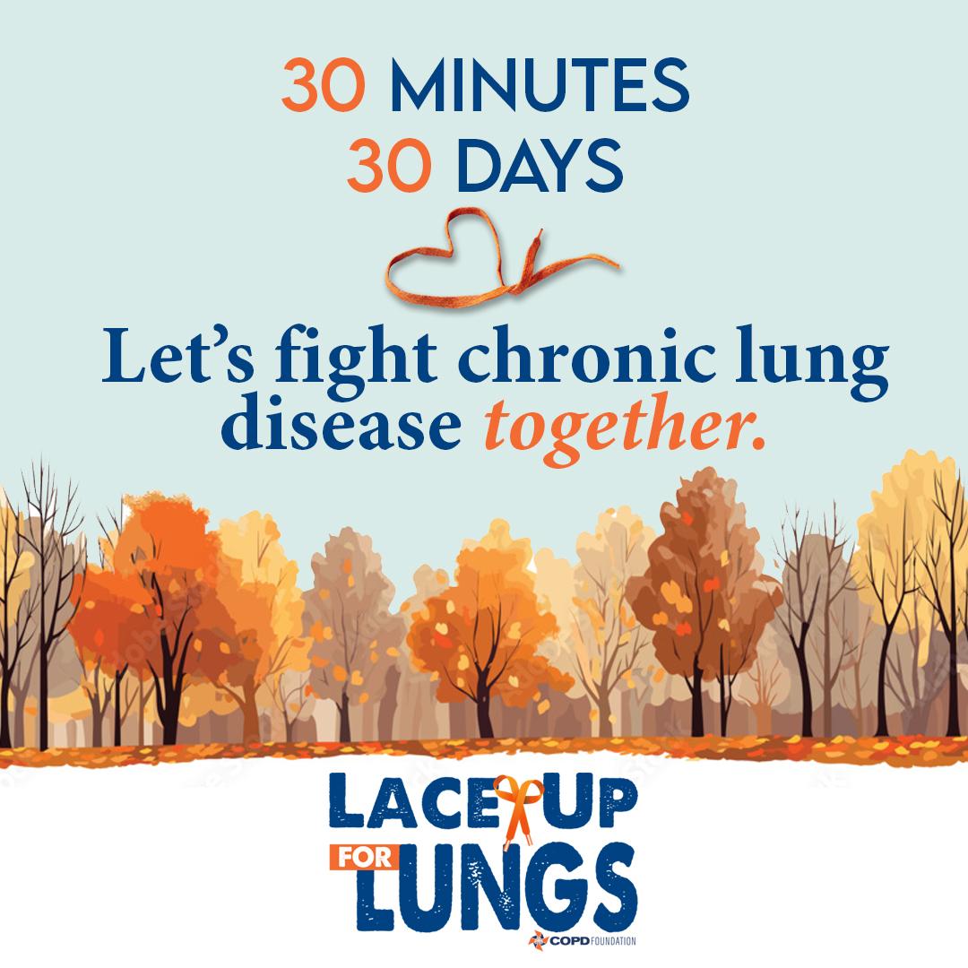 Go the distance for #COPDAwarenessMonth. Join us alongside @COPDFoundation for the Lace Up for Lungs challenge and get active for 30 minutes a day every day in November. Wear orange and move for a mission! Join the Facebook group and share pictures and videos of how you stay moving: https://copdf.co/challenge #LaceUpforLungs #LungHealthChampions