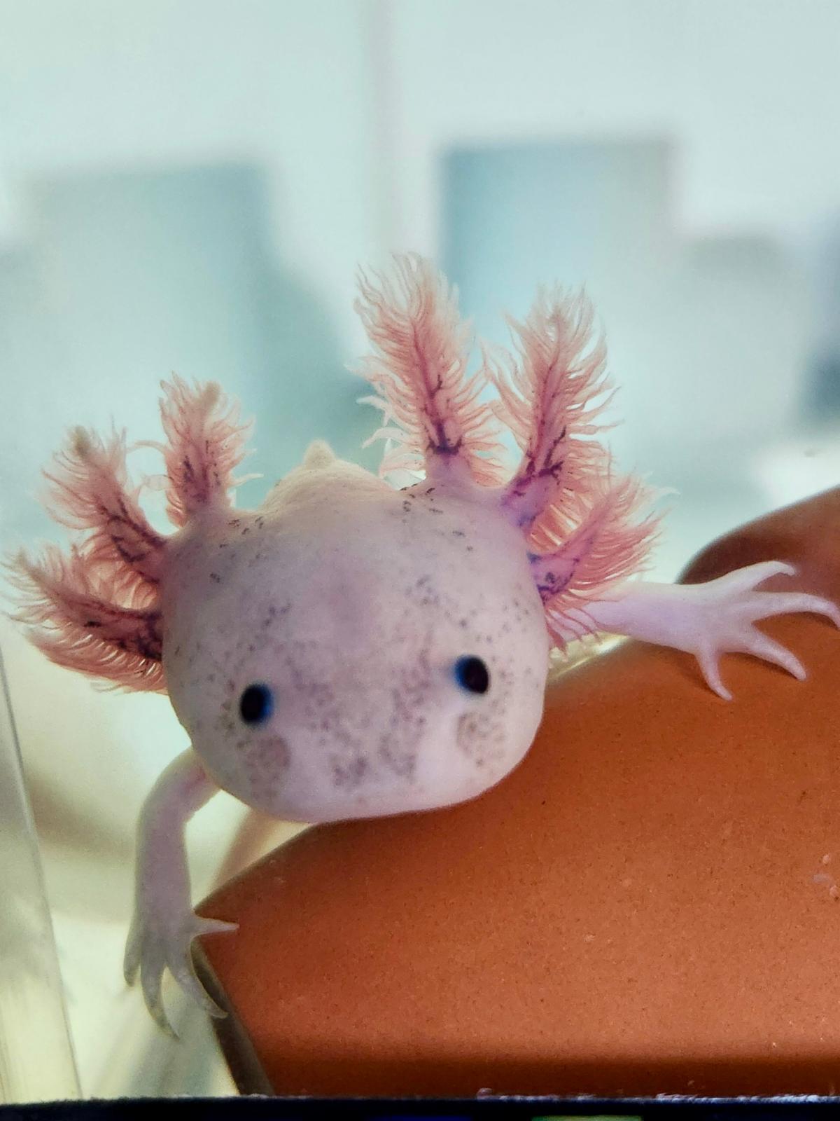 The Axolotl is a type of unique salamander that remains in its aquatic, larval stage throughout its entire life, a condition known as neoteny. Unlike other amphibians, this feathery friend resides in water and does not undergo metamorphosis to develop lungs and live on land. What a special living lesson for our students!