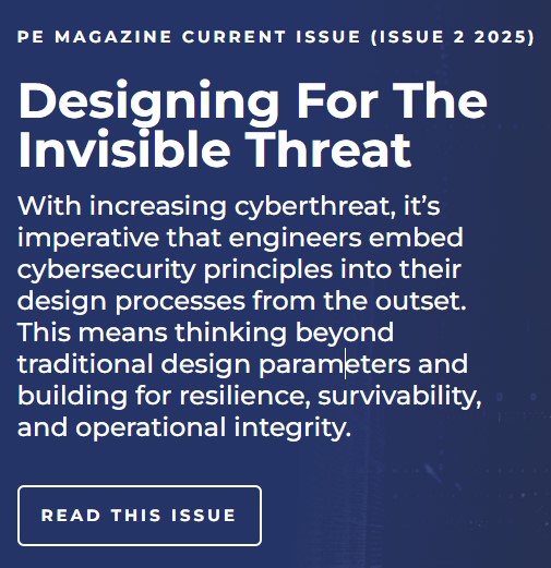 The latest issue of PE Magazine includes feature articles on the imperative for engineers to embed cybersecurity principles into their design processes and an exploration of quantum computing technology.