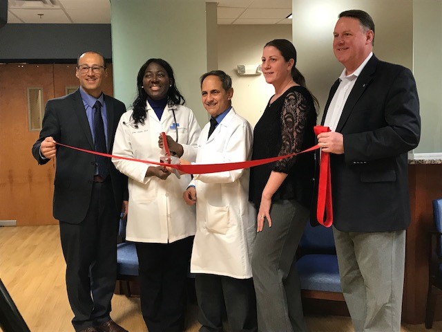 - Norwood Hospital President, Sal Perla, Dr. Juliet Nimako, Dr. Louis Silvagnoli, Robyn Konopacki, SMG, Director Practice Management and Chamber President, Tom O'Rourke celebrate the opening SMG Primary Care Physicians practice in Norwood with a recent ribbon cutting.