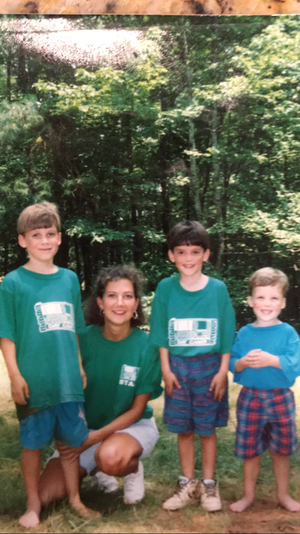 Photo: Suzanne with Jason and his two brothers in 1995, courtesy Josh Powell Camp.
