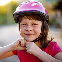 One of the easiest and most important ways to protect your child is by having them wear a helmet while on a bike or other wheeled activities like skateboarding or rollerblading.