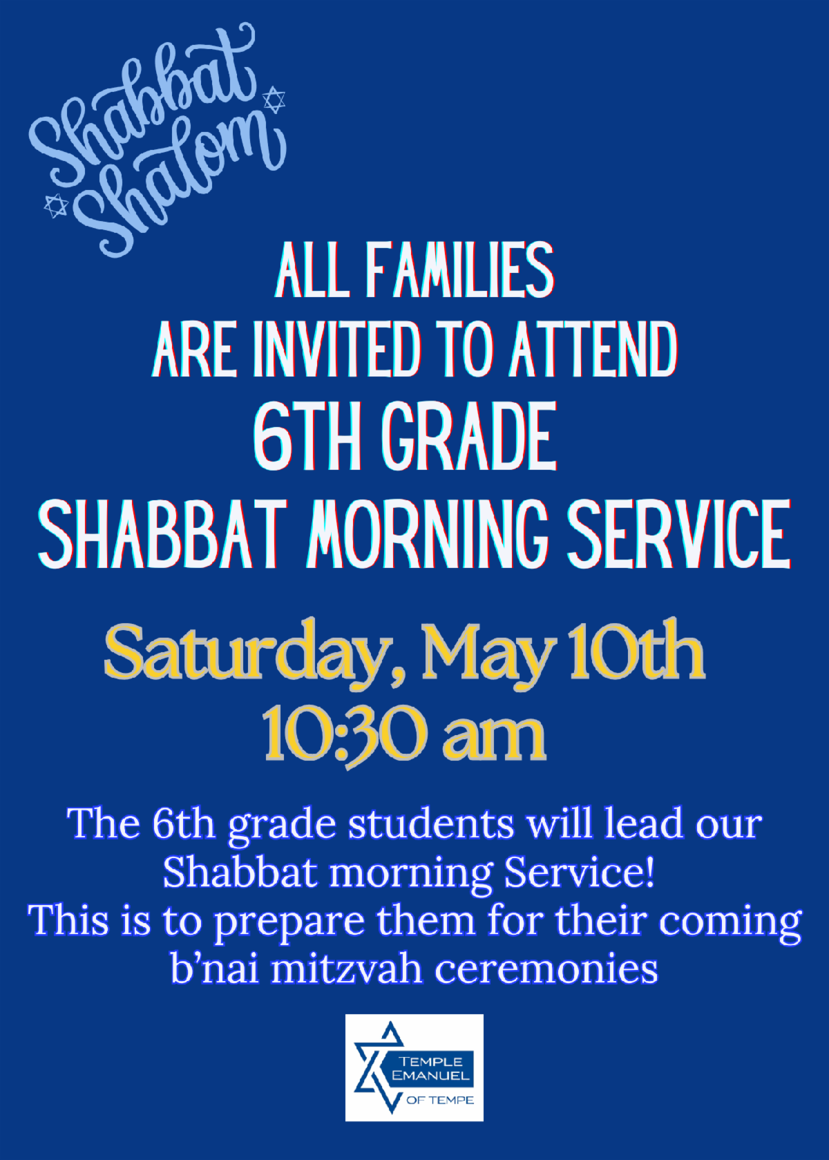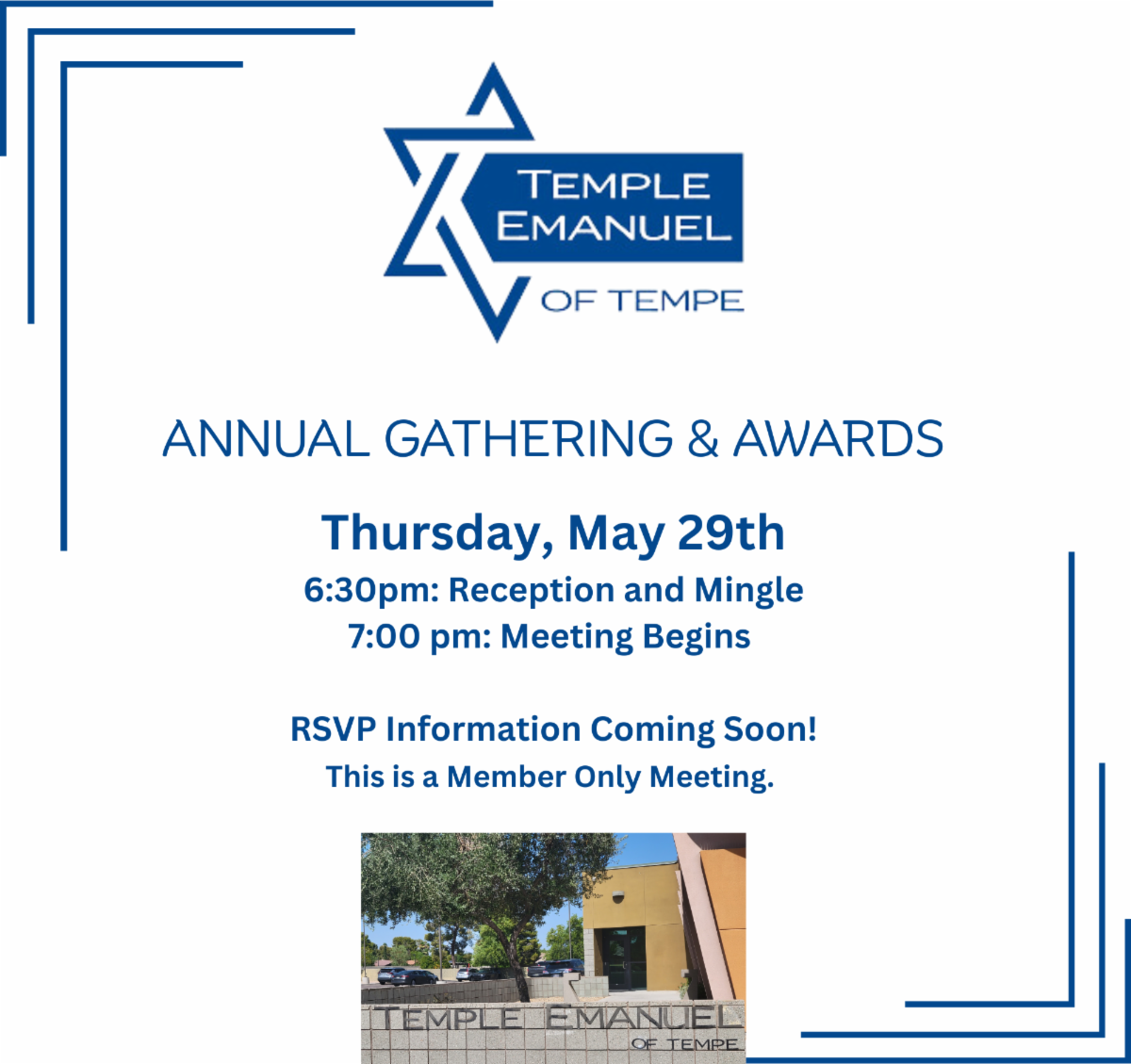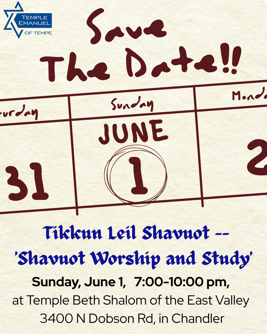 Sunday, June 1, 7:00-10:00 pm, at Temple Beth Shalom of the East Valley, 3400 N Dobson Rd, in Chandler.