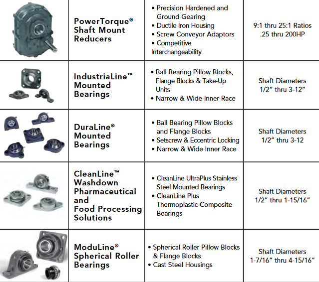 Sprockets, Gears, Sheaves, Couplings, Timing Pulleys, Bushings, Idlers, Synchronous Sprockets, Screw Conveyors and Bucket Elevators