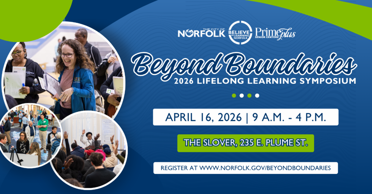 Hosted by the City of Norfolk, Believe in Learning Norfolk and PrimePlus Senior Centers, this one-day conference (to be held Apr. 16, 2026) is your opportunity to explore what it truly means to learn across a lifetime.