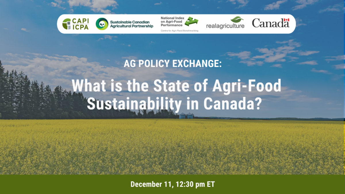 Demonstrating sustainability credentials represents a major economic opportunity for Canada’s agri-food sector and is central to advancing the country’s global food ambition. Join CAPI and RealAgriculture for an Ag Policy Exchange where we will discuss the Centre for Agri-Food Benchmarking’s National Index on Agri-Food Performance 2025 Update.