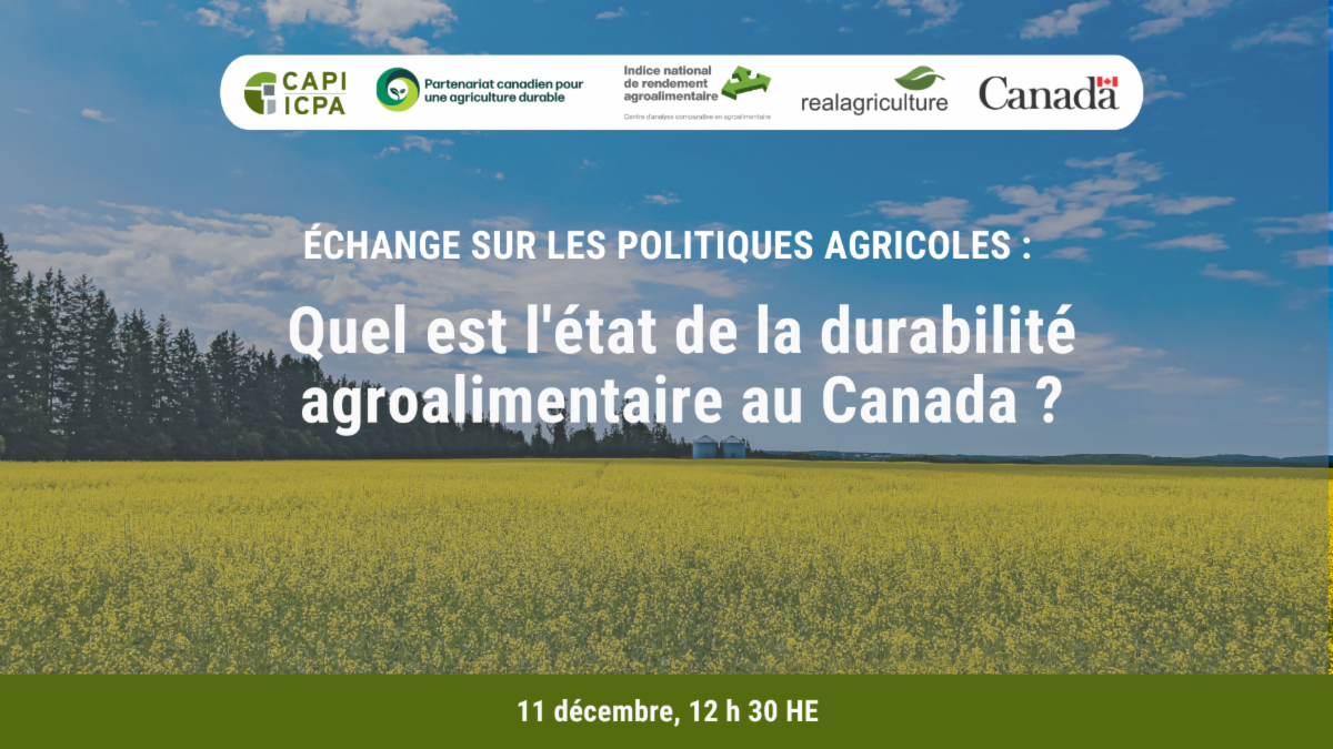 Démontrer ses références en matière de durabilité représente une opportunité économique majeure pour le secteur agroalimentaire canadien et est essentiel pour faire progresser l'ambition alimentaire mondiale du pays. Rejoignez l’ICPA et RealAgriculture pour un échange sur les politiques agricoles où nous discuterons de la mise à jour 2025 de l'Indice national de rendement agroalimentaire du Centre d’analyse comparative en agroalimentaire.