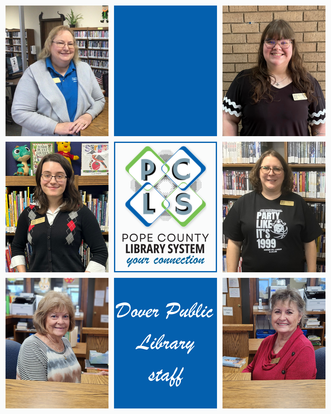 We are excited to welcome Maggie Oliver (top right) as the new Assistant Branch Manager at Dover Public Library! A former programming clerk, at Dover, Maggie joins Branch Manager Melissa Sanders (top left), programming clerk Annabelle Speir (center left) , and circulation clerks Wendy Ledbetter (center right), Phyllis Bewley (bottom left) and Peggy Cook (bottom right) on our Dover team.