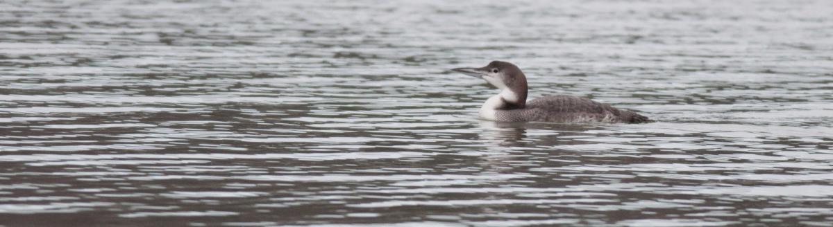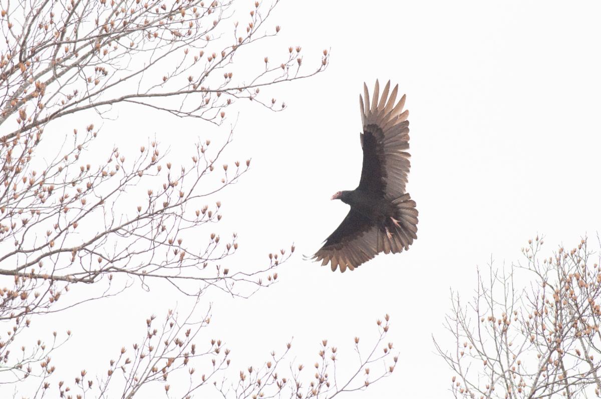 Photos by Linda Mjolsnes-- masthead photo: A loon visits Lake Monroe, and below: turkey vulture with tulip poplar.