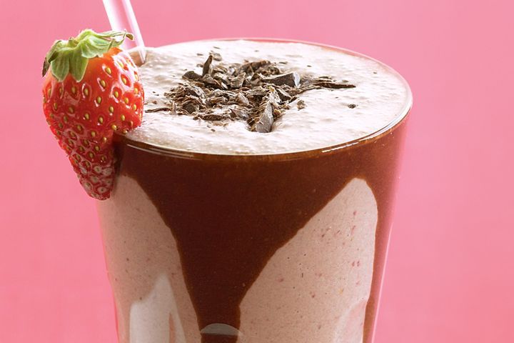 - Pour into a glass and enjoy! Optionally, garnish with a strawberry or drizzle with chocolate syrup.