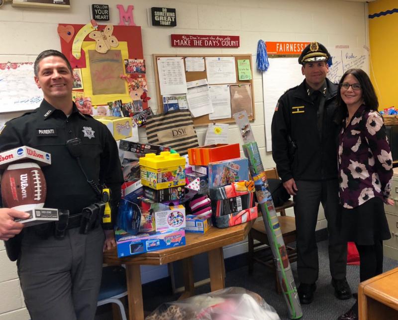 Big thank you to Chief Delaere, SRO Parenti, and members of the Scituate PD for dropping off toys to help