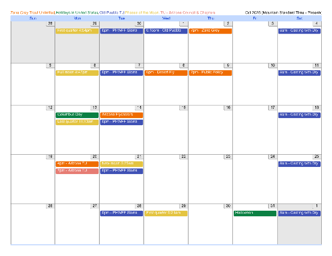 AZ Trout Unlimited & Chapters, Arizona Flycasters Club and several other area fishing and conservation calendars