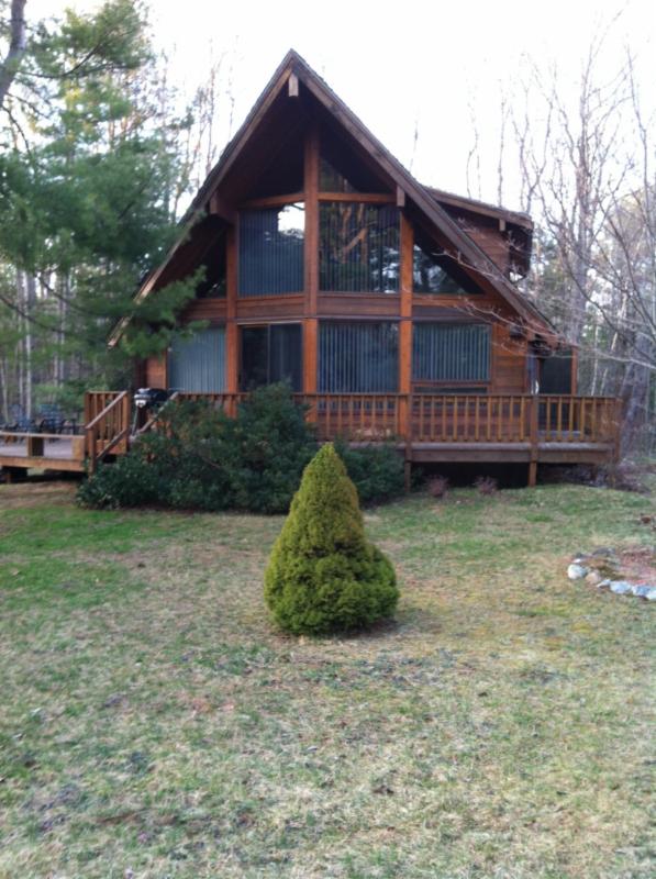 Are you looking for a vacation that offers peace and serenity? Something removed from the hustle and bustle of the beach, but close enough to visit? This sunny three bedroom, two bath A-Frame is just a mile from Goose Rocks Beach and within driving distance to local shops and restaurants. Situated in a private neighborhood on a cul-de-sac this charmer offers a wrap-round deck, large 2nd story master bedroom loft with a king sized bed and private bath. Two additional bedrooms and bath on the first floor. Wall of windows for a bright and sunny house. For more information, please visit here.