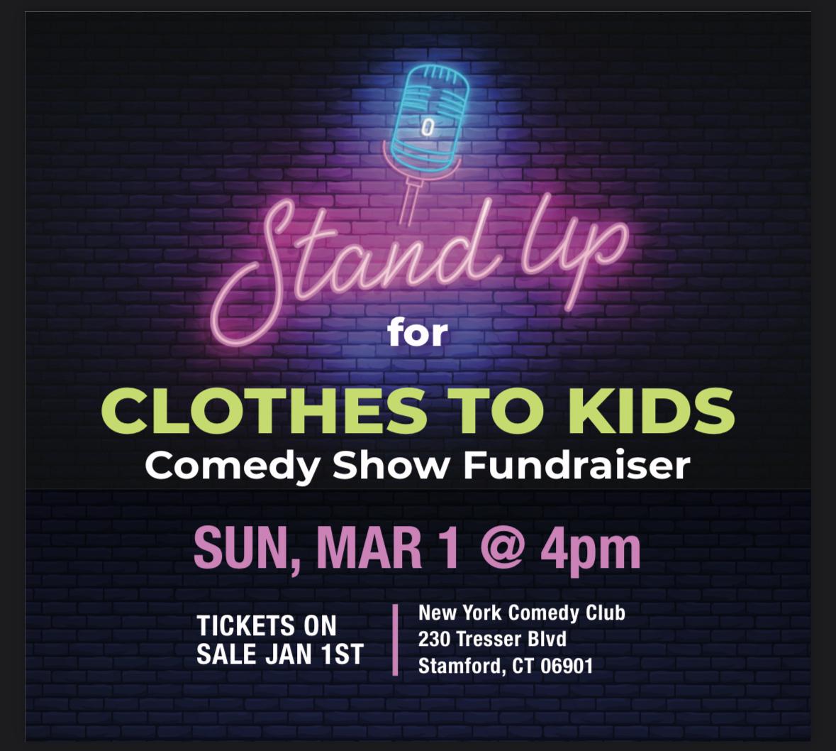 | | Students from the Riverside School of Greenwich organized their annual clothing drive for CTKF, collecting over 45 bags and boxes of clothing. | Students and parents from Newfield School of Stamford worked together to organize over 45 bags of clothing donations. | | With 2025's comedy show fundraising event being a hit, CTKF is excited to partner with the New York Comedy Club again in 2026 for another wonderful night of laughter! The fundraiser will take place on March 1st, 2026 at 4PM. Keep an eye out for details in our upcoming communications/social media posts on how to purchase tickets. | | SASO Partners With CTKF for Ongoing Project | We are happy to share that SASO (Student Athletes Serving Others), a Fairfield-based mom-and-daughter service organization, has chosen CTKF as an ongoing partner! On January 24th, 2026, SASO members will gather at the home of CTKF's Corporate and Educational Events Coordinator, Lisa Savone, to help sort through clothing donations. SASO’s mission is to inspire girls and their mothers to lead through service, creating positive change in local communities. CTKF is looking forward to this new partnership and the great things we can accomplish together for our community. | |