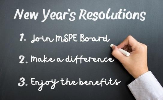 The MSPE Board is now accepting nominations of people interested in actively serving as Officers or Directors. Open positions include: President Elect, Secretary, Treasurer, Delegate to NSPE, and Director.