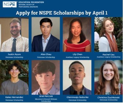 This year, the Foundation will award a variety of scholarships for high school, undergraduate, and graduate school students. PEs give back to future generations, and NSPE is giving back to students!