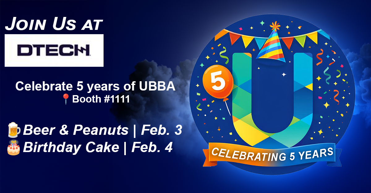 Join us at the UBBA Booth #1111 at DTECH as we celebrate our 5th birthday. Stop by to enjoy cake, connect with fellow members, and network with industry peers as we reflect on what we have built over the past five years, explore what is new, and get a preview of what is ahead as we continue Powering Utility Connectivity together.