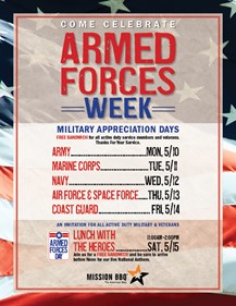 Mission BBQ Armed Forces Week (May 10-May 15)