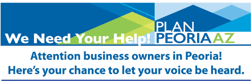 In August, the PlanPeoriaAZ Team and Economic Development Services staff will be hosting three business forums throughout the City. Local business owners are invited to share their thoughts about the resources they need to stay competitive and vibrant in an evolving marketplace. As we chart our future as a city, these forums are an important opportunity for the business community to lend their voice in transforming Peoria’s future. Please RSVP for a meeting held closest to you: