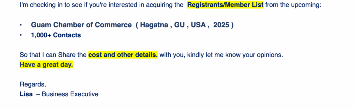 - Feel free to call the Guam Chamber office to confirm or validate an email that you are unsure came from the Chamber.