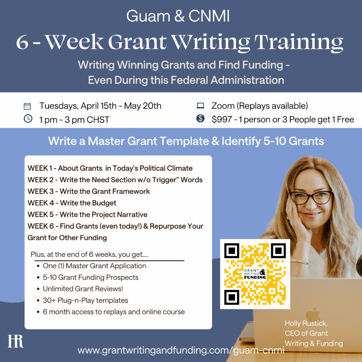 Guam-based Grant Writing & Funding (GW&F) is hosting our annual 6-week Master Grant Training for Guam and CNMI. This is the fifth year we’ve hosted this training in Guam, and participants have literally secured millions of grant dollars for programs in the islands after going through our training. The 6-week Guam and CNMI 6-Week Grant Writing Training teaches aspiring and seasoned grant writers to have a system to write winning grant proposals via GW&F’s Master Grant Template System.