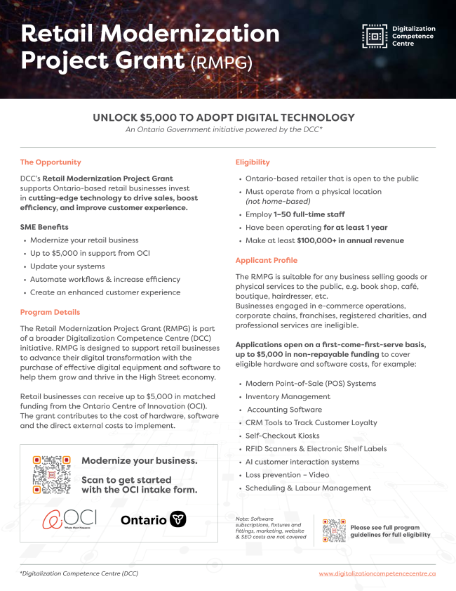 💡 Ontario Innovation Centre – Business Modernization Grants (2025)