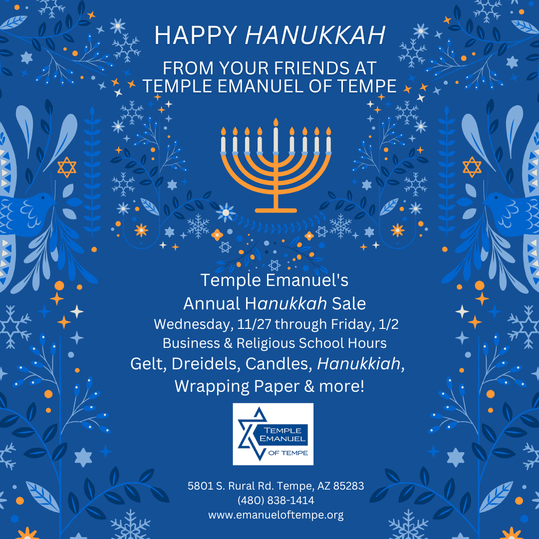 9:30 am | Religious School with Hanukkah Hut